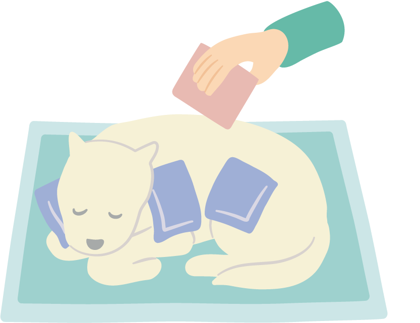 ペットシーツやタオルなどを敷いた上に、ペットを寝かせてあげます。